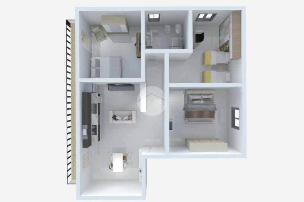 L'immobile si compone di ingresso, soggiorno con angolo cottura e camino, tre camere da letto e un balcone che garantisce un piacevole sfogo esterno. Gli ambienti sono ben distribuiti e luminosi, offrendo spazi funzionali e accoglienti adatti sia a famiglie che a chi necessita di stanze aggiuntive per studio o lavoro.