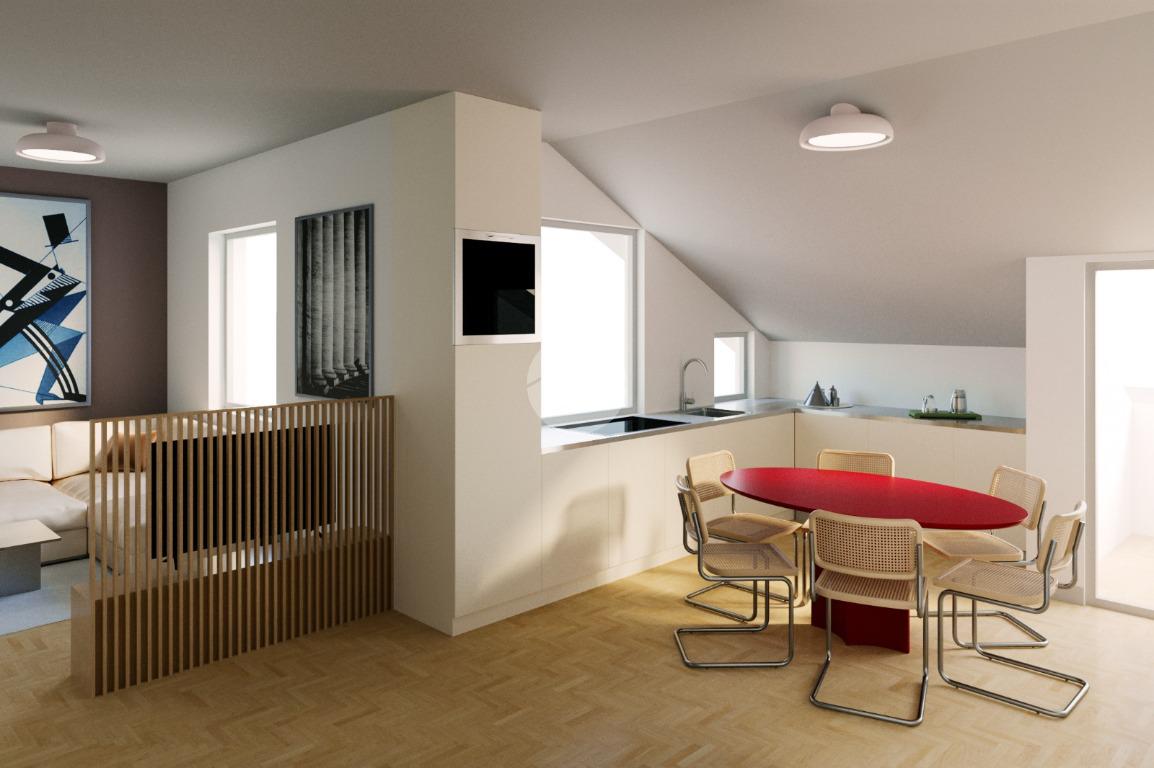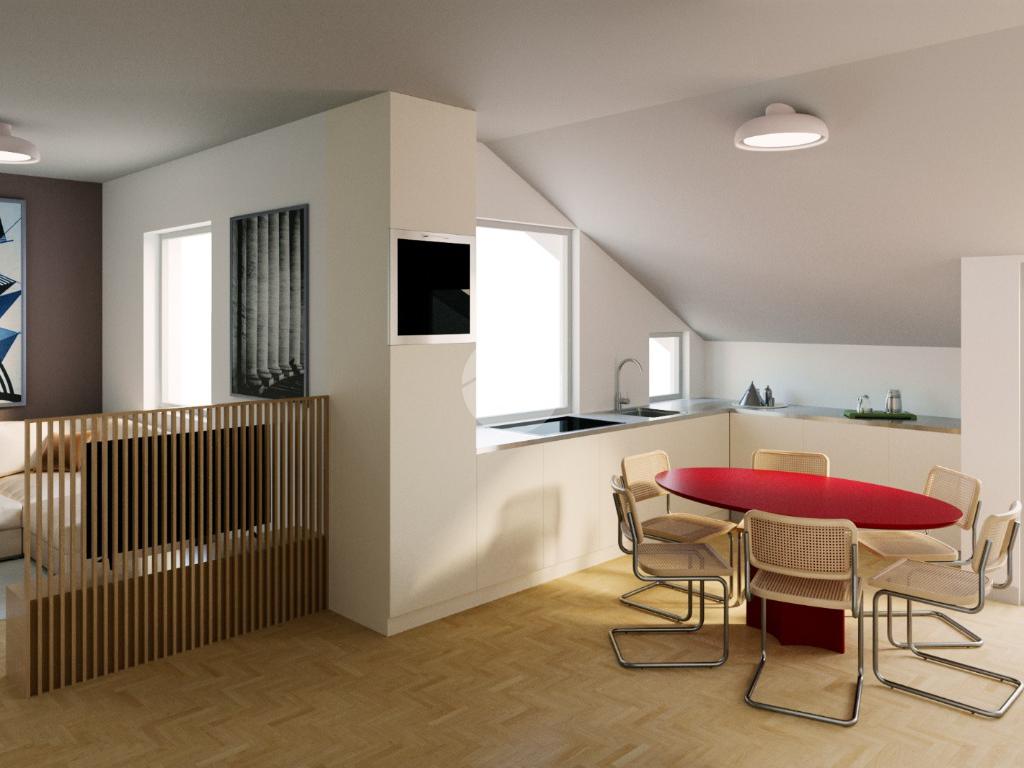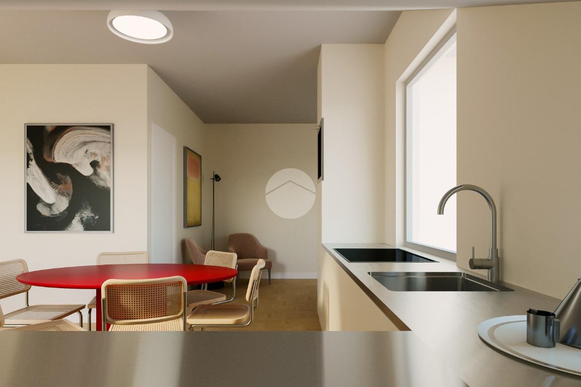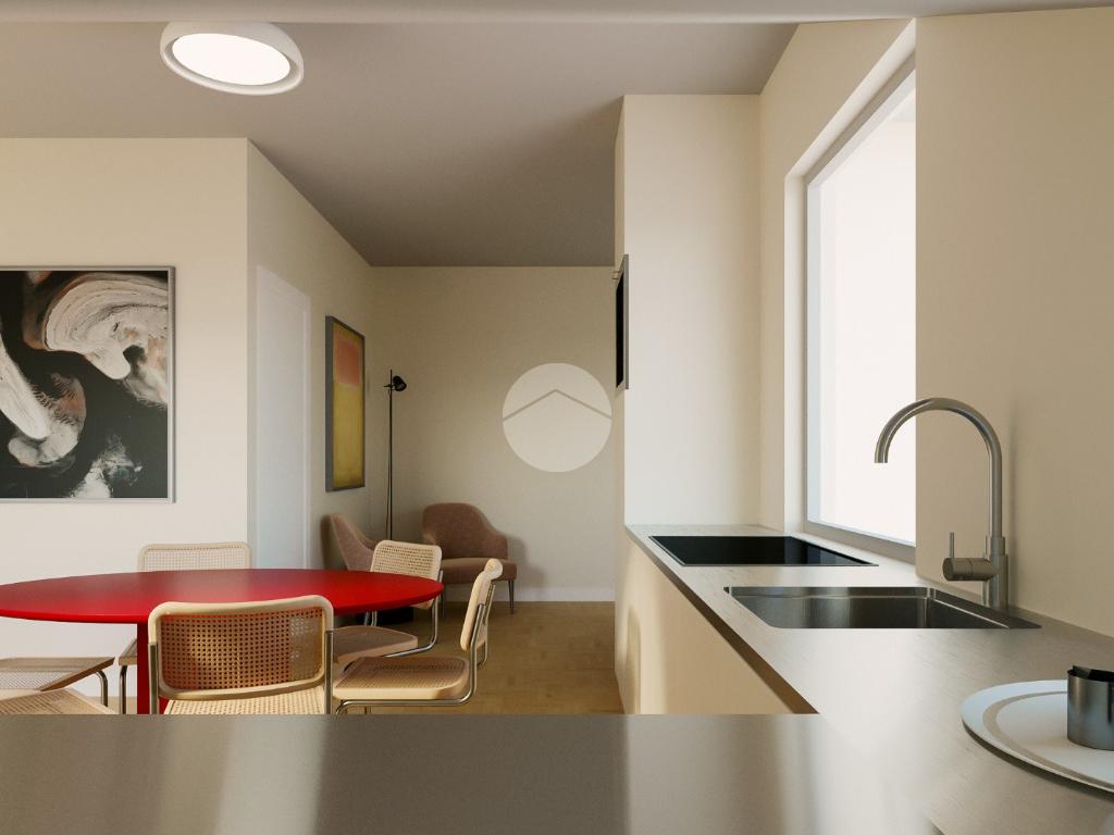 Ingresso su soggiorno con angolo cottura con affaccio su balcone